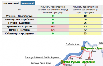 У прикордонних автомобільних пунктах пропуску на Львівщині стоять у чергах 301 транспортний засіб.