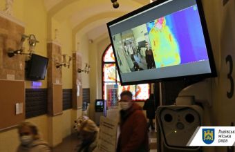 Відсьогодні у Ратуші в тестовому режимі запрацювали пристрої проведення дистанційного температурного скринінгу для працівників та відвідувачів Львівської міської ради.