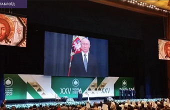 У Росії розпочався Всесвітній російський народний собор: молитву «Царю Небесний» учасники виконали перед великим зображенням Путіна.