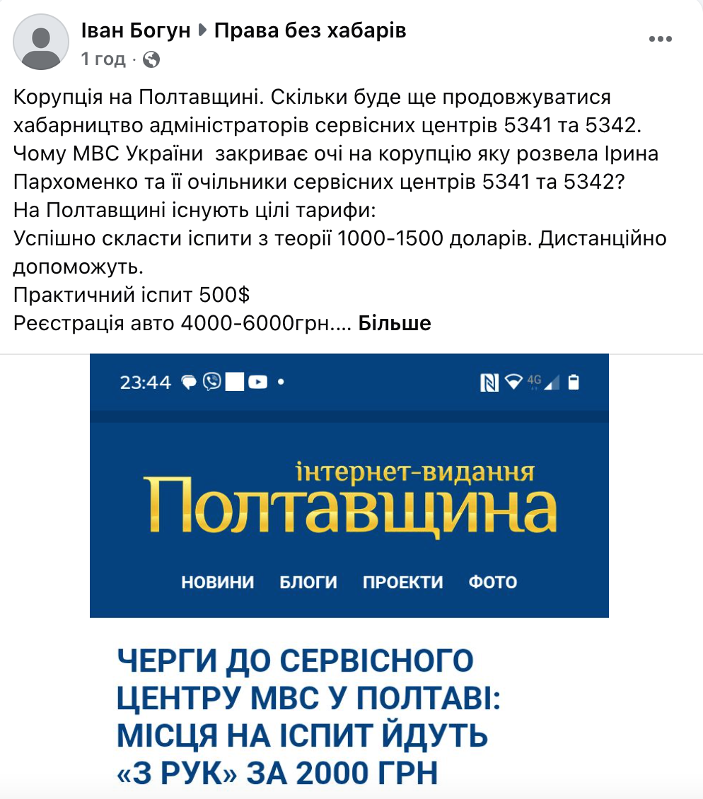 А на Полтавщині нібито існують негласні тарифи на послуги сервісних центрів МВС: