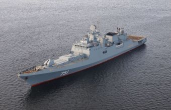 Фрегат «Адмірал Ессен» стоїть на заряджанні крилатими ракетами «Калібр» в пункті базування у Севастополі.