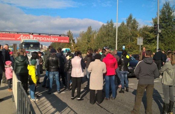 Неподалік Львова протестували проти перенесення кінцевої зупинки приміських автобусів на АС-3 на вулиці Петлюри.