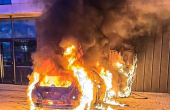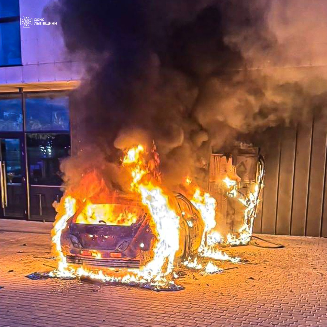 Як з’ясувалося на місці події, загорівся електромобіль Nissan, а також зарядна станція. Існувала загроза перекидання вогню на поруч розташовану будівлю.