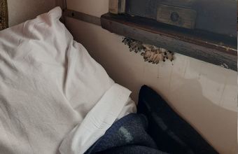 Вона розмістила фото, де просто з віконної рами проросли гриби, поруч зі спальним місцем пасажирки. Це - бічна полиця плацкартного вагона.