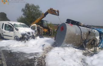 Також внаслідок ДТП з вантажного автомобіля "ГАЗ 53" витекло дизпаливо на дорожнє полотно на площі 4 кв.м. Цистерна з паливом не пошкоджена.