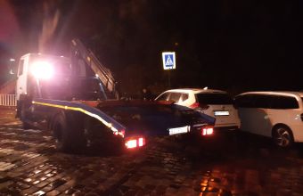 Навпроти церкви у Львові евакуатор забирає білі автомобілі (відео)