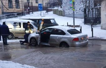 Сьогодні, 30 січня, у центрі Львова автомобіль провалився у яму. Індидент стався близько 7:45.