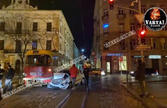 На проспекті Свободи зіткнулися трамвай Tatra T4SU (№006) та легковий автомобіль.