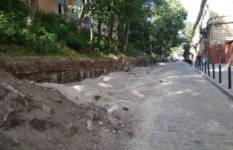 На вулиці Просвіти в центрі Львова ремонтують підпірну стінку.