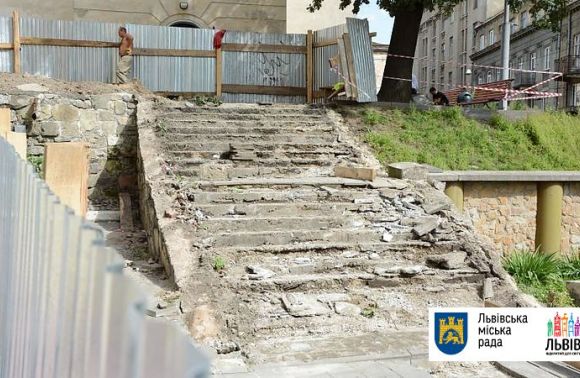 У міськраді запевнили: «Розпочалися роботи з капітального ремонту сходів на площі Князя Ярослава Осмомисла, які ведуть до церкви Матері Божої Неустанної Помочі (Марії Сніжної)».
