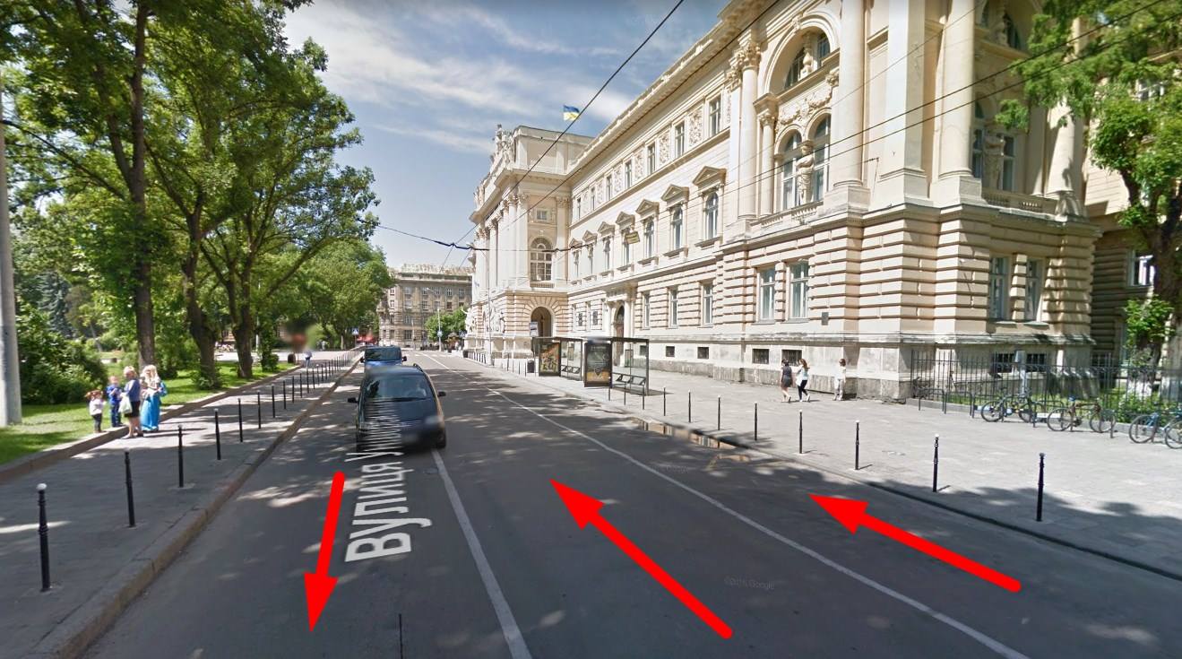 На сторінці ГО «Зручне місто» в інтернет-мережі «Facebook» повідомили в п’ятницю, 12 квітня: «Перед головним корпусом Львівського національного університету імені Івана Франка будуть виділенка для громадського транспорту й рознесені тролейбусна та автобусна зупинка. Після нанесення нової розмітки будуть дві смуги руху вбік від вулиці Січових Стрільців до вулиці Листопадового Чину та одна в зворотний бік».