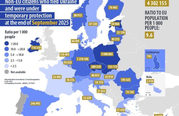 Порівняно з кінцем серпня поточного року загальна кількість осіб з тимчасовим захистом на кінець вересня 2025 року в ЄС зросла на 49 555 (+1,2 %) і склала понад 4,3 млн.