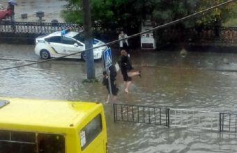 Також, за її словами, на вулиці Сахарова патрульні змушені були евакуйовувати людей із маршрутки, що застрягла посеред глибокої калюжі. Члени 302 екіпажу Віталій Сушко та Назар Мончук роззулися, підійшли до маршрутки, зробили з рук «місток» і на ньому переносили пасажирів на тротуар.