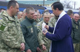 «У зону проведення антитерористичної операції вирушили бійці батальйонної тактичної групи однієї з бригад Збройних Сил України. Десантників вийшли провести рідні, знайомі, волонтери та небайдужі українці.