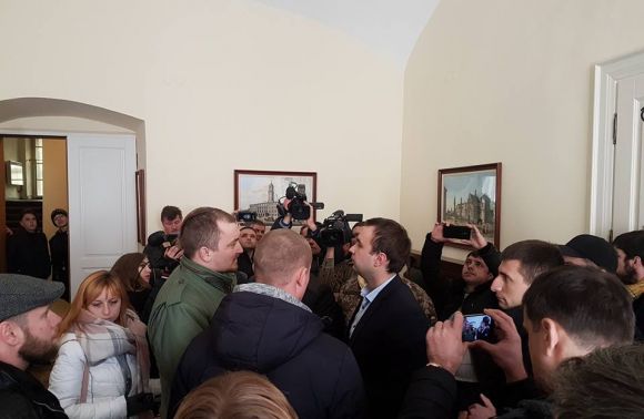 Депутат Львівської міськради Любомир Босаневич опублікував сьогодні, 1 грудня, на своїй сторінці в інтернет-мережі «Facebook» фоторепортаж із будівлі ЛМР і повідомив: «Учасники бойових дій та волонтери АТО прийшли до Садового за поясненнями. Його знову немає...».