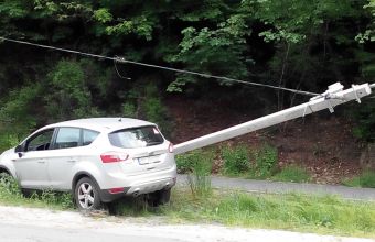 Сьогодні, 10 травня, на дорозі Львів-Брюховичі, на виїзді зі Львова, учбовий автомобіль протаранив світлову опору.