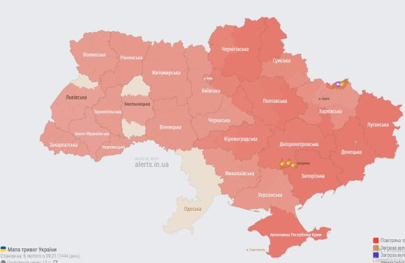 Нагадаємо, в області о 8:54 оголосили повітряну тривогу також у звязку зі злетом МіГ-31К.