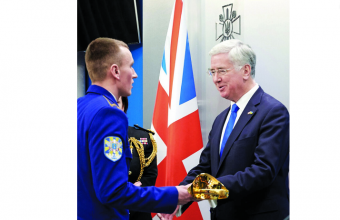 Державний секретар з питань оборони Великої Британії Майкл Феллон вручив нагороду старшому лейтенанту Михайлові Лещенку як кращому іноземному курсанту.