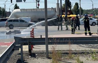 Рятувально-пожежні служби гасять уламки ракети, що палають на проїжджій частині дороги в Оболонському районі",- зазначив Кличко.