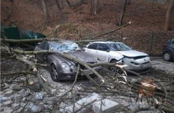 Ураганний вітер звалив дерево у Львові і розтрощив автомобілі
