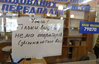 Працювала тільки видача посилок. Працівниця пошти повідомила, що усі оператори написали заяви на звільнення. Про це поінформували сьогодні, 24 травня, на порталі оперативних новин «Varta1», де також опублікували фото з відділення пошти на вулиці Олександра Довженка, 6.