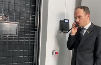 міністр юстиції Денис Малюська випробовує телефонний зв'язок