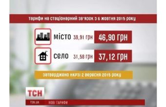 «В Україні зросла плата за стаціонарний телефонний зв'язок. Зокрема, абонплата для міських користувачів зросла із 39,91 грн до 46,90 грн. Натомість для сільських і селищних абонентів – із 31,58 грн до 37,12 грн. Про таке своє рішення повідомила Нацкомісія з регулювання зв'язку та інформатизації. Відповідні зміни регулятор затвердив ще на початку вересня. Нагадаємо, тарифи мали зрости ще з 1 жовтня. Проте була затримка з їхнім офіційним затвердженням», – повідомили сьогодні, 7 жовтня, в «Телевізійній службі новин» каналу «1+1». Подробиці – в його відеосюжеті: