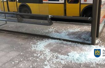 Вандали трощили в центрі Львова зупинку громадського транспорту