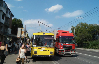 «ДТП на зупинці «Кульпарків» – фура зачепила та обламала «ріг» тролейбуса №2 маршруту, проїзд можливий тільки по однією смугою», – повідомили сьогодні, 9 серпня, на сторінці громадської організації «Варта 1» в інтернет-мережі «Facebook», де також опублікували фото з місця ДТП.