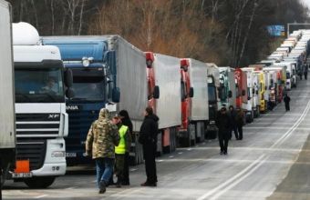 Черга вантажівок, які очікують на оформлення в Дорогуську, становить близько 30 км і сягає села Столпє. Там стоять близько 1050 вантажівок.