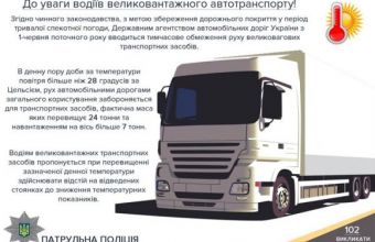 Якщо показники термометра сягають в денну пору доби вище +28°, то транспортні засоби фактичною масою понад 24 тонни і навантаженням на вісь сім тонн не можуть продовжувати рух автомобільними дорогами загального користування.