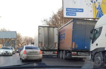 Про це повідомили в понеділок, 16 грудня, на сторінці громадської організації «Варта 1» в інтернет-мережі «Фейсбук», де також опублікували фото з місця події й розповіли, що черга вантажівок на виїзді зі Львова ускладнила рух транспорту.