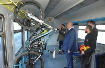 Довідково: «20 травня 2016 року Львівська залізниця відправила у перший рейс новинку для українських колій - переобладнаний вагон-велосипедовоз. Вагони курсують у напрямку до Мукачевого та Ужгорода, адже саме на цих маршрутах є значний попит пасажирів на перевезення велосипедів, аби продовжити подорож до туристичних цікавинок уже двоколісним транспортом».