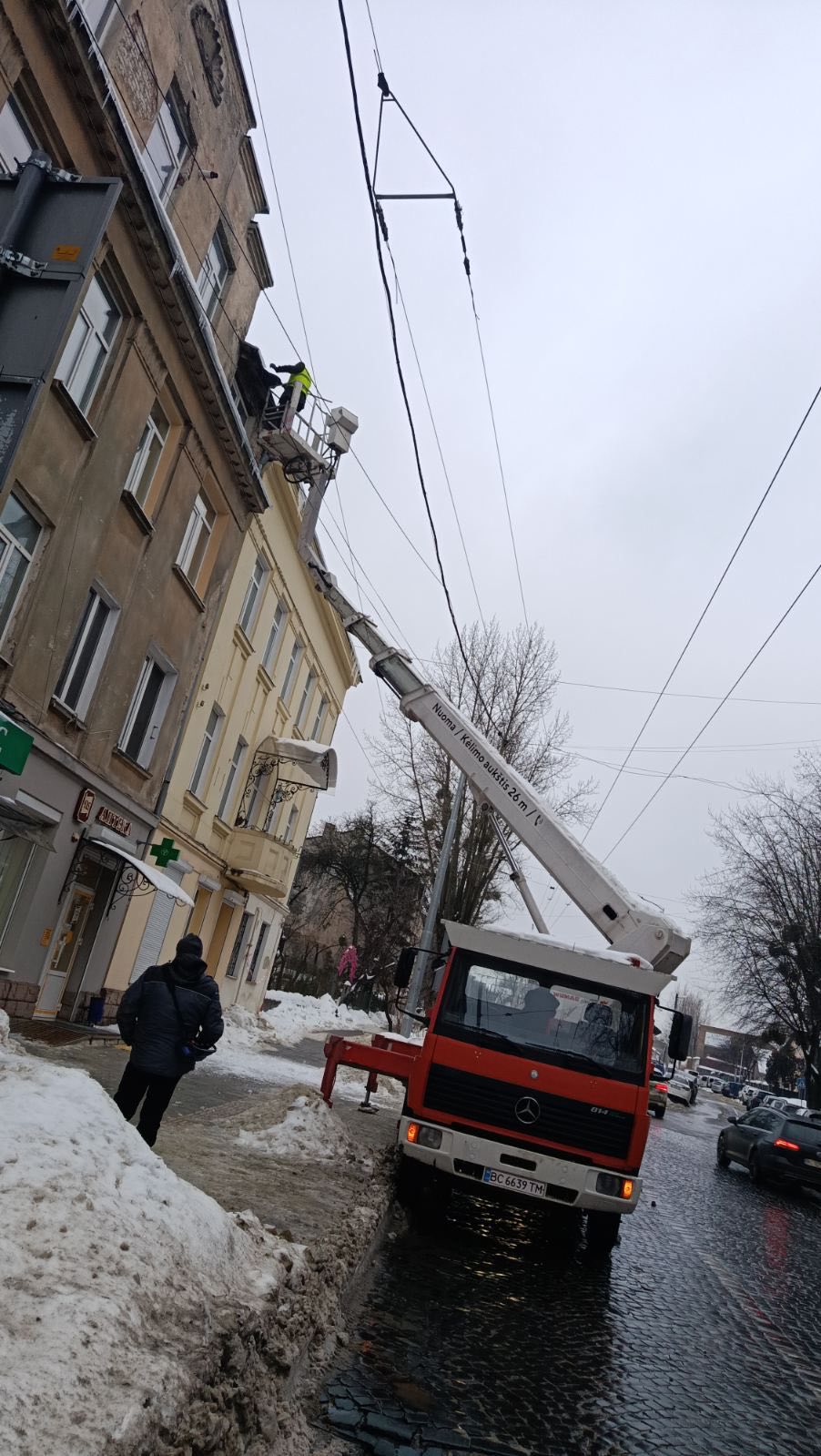 Посадовець розповів, що місто залучило максимальну кількість альпіністів і автовишок для очищення дахів. Паралельно триває вивезення снігу, працюють усі комунальні служби. Додатково залучено приватну техніку та працівників установ та інституцій