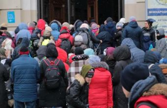 Від залізничного вокзалу Львова курсують шатл-баси, які доставляють біженців на Арену Львів