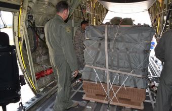Військово-транспортні літаки Ан-26 ЗСУ та американський С-130J «Геркулес» виконали десантування вантажів у районі Міжнародного центру миротворчості та безпеки на Львівщині.