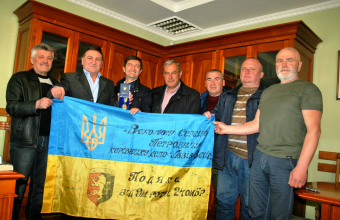 «У локомотивне депо Львів-Захід регіональної філії «Львівська залізниця» із почесною місією завітав керівник ГО «Народна самооборона Львівщини» Валерій Веремчук. Він вручив начальнику депо Сергію Ваколюку прапор 24-ї окремої механізованої бригади імені короля Данила, підписаний бійцями 9-ї роти, та відзнаку громадської організації. У такий спосіб українські бійці з передової на сході України подякували залізничникам за допомогу – виготовлені скоби для укріплення бліндажів», – поінформували також на «Львівській залізниці».