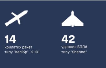 Підрозділи протиповітряної оборони та авіація повітряного командування «Захід» в зоні своєї відповідальності станом на 10:10 знищили 14 крилатих ракет та 42 ударних БпЛА типу «Shahed».