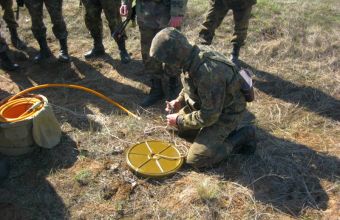 Одне з таких практичних занять було присвячене прийомам пророблення проходів в протипіхотних мінних полях противника шляхом підриву. Для ускладнення задачі, сапери мали виконати усі маніпуляції в умовах бойового зіткнення з підрозділом противника.