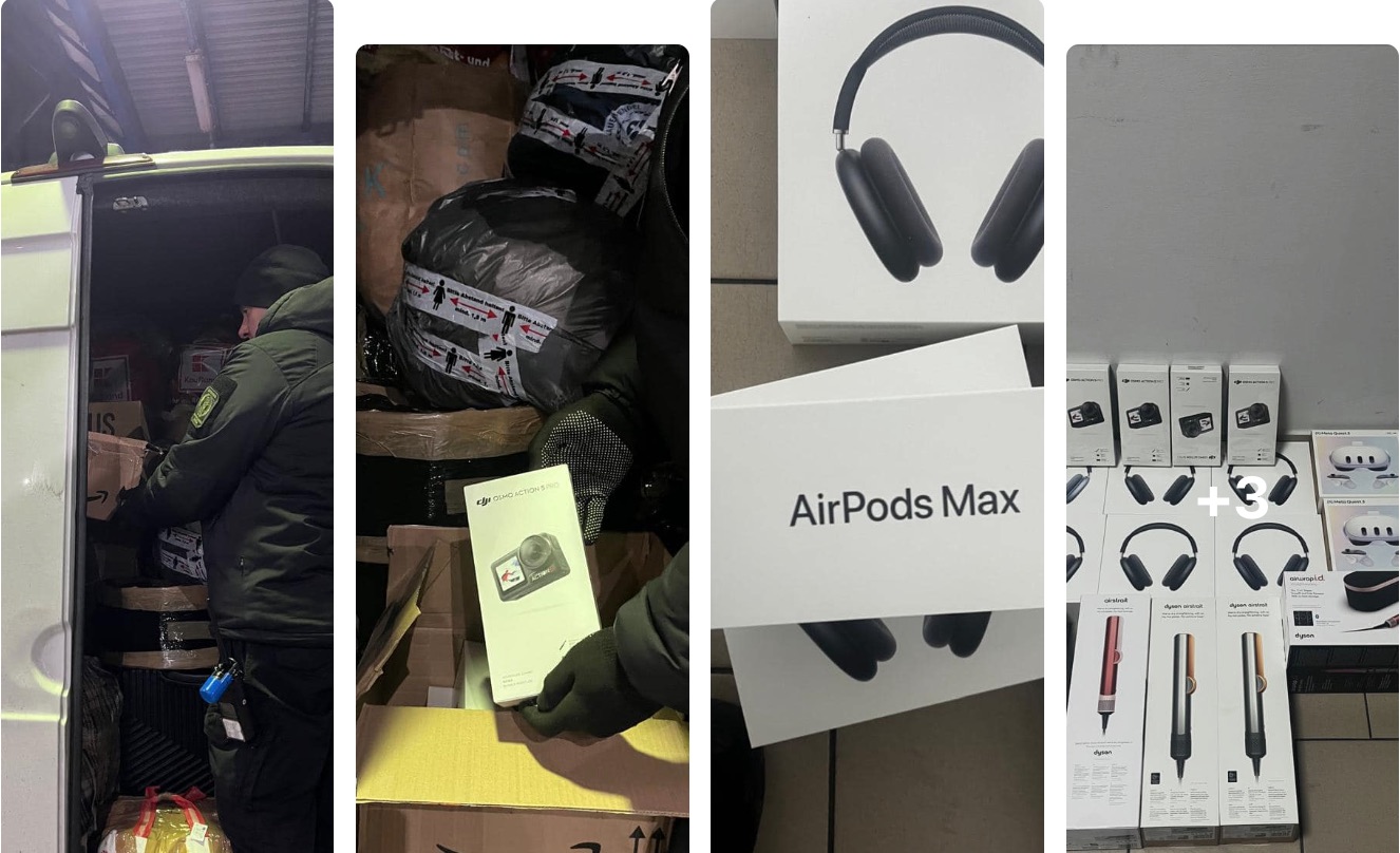 24-річний уродженець Буковини прямував на в’їзд в Україну. Під час огляду автомобіля марки "Мерседес" на верхній багажній полиці в картонному ящику виявили навушники Apple AirPods Max, екш-камери, мультистайлер Dyson та іншу техніку. Всього працівники митниці вилучили 25 одиниць пристроїв різних торгових марок.