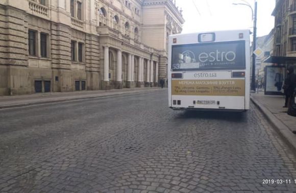 Маршрутний автобус №53 збив у понеділок, 11 березня, біля оперного театру на проспекті Свободи у Львові жінку.