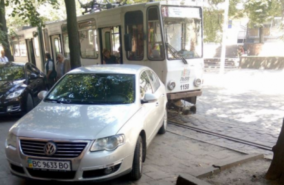 Електротранспорт простоював на вулиці Бандери через порушення правил паркування.