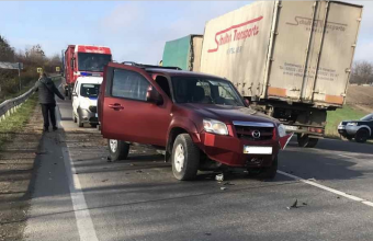 Водій вантажівки «Вольво» скоїв зіткнення з автомобілем «Мазда» і втік з місця події