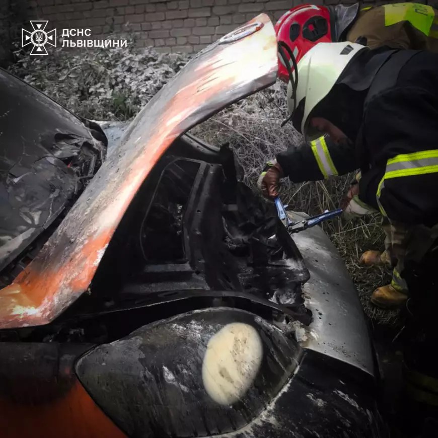 На момент прибуття вогнеборців до місця виклику автомобіль був повністю охоплений вогнем.