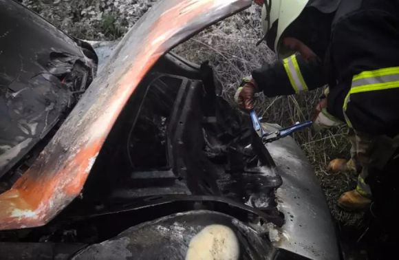 На момент прибуття вогнеборців до місця виклику автомобіль був повністю охоплений вогнем.