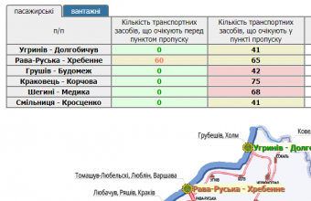 332 транспортні засоби очікують у прикордонних автомобільних пунктах пропуску на Львівщині, а ще 60 скупчилися перед пунктом пропуску «Рава-руська»