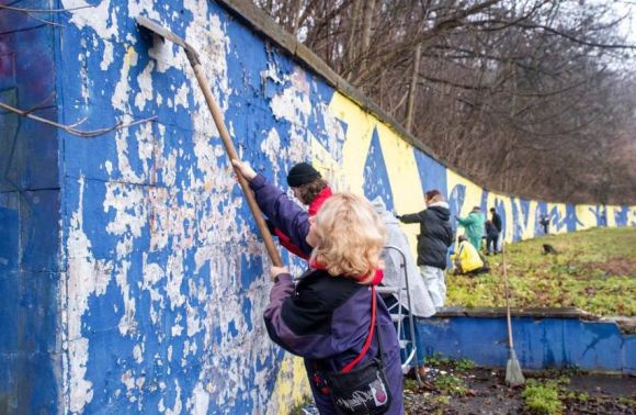 У суботу, 13 грудня, відбулась толока, під час якої зачистили стару фарбу та нанесли шар грунтовки. До роботи долучились родини полонених і небайдужі. Вони завдяки спільним зусиллям змогли зробити перший етап оперативно та результативно. Далі – нанесення нового шару фарби та зустріч-відкриття наступного тижня. Про дату та час організатори повідомлять додатково.
