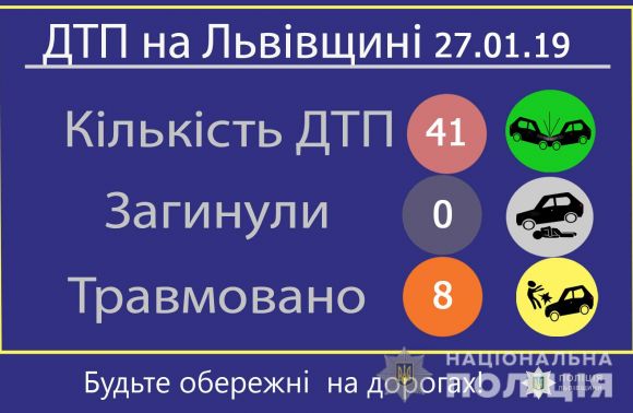 Зокрема, у Львові зареєстрували минулої доби 20 дорожньо-транспортних пригод. 27 січня на автодорогах Львівської області внаслідок ДТП травмувалися восьмеро людей.