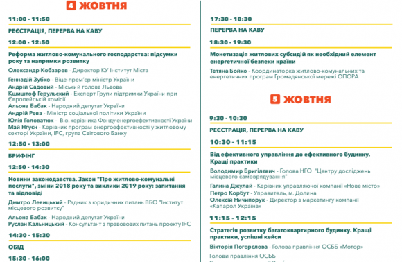 Фрагмент програми Всеукраїнського форуму ОСББ.