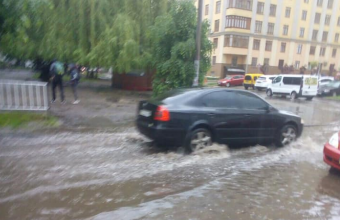 Вулиця Окуневського у Львові потонула в дощовій воді